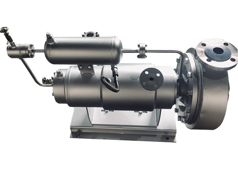 屏蔽泵是用同一根轴将电机的转子和离心泵的叶轮固定在一起,然后用屏蔽套将这一组转子屏蔽住。而电机的定子围绕在屏蔽套的四周,屏蔽套是由金属制成的,因此动力可以通过磁力场传递给转子。而整个转子都在被泵送液体中运转。屏蔽的端部靠法兰或焊接的结构实现静密封。屏蔽套实际上是一个压力容器。定子的内表面和转子的外表面装有耐腐蚀金属薄板制造的定子屏蔽套和转子屏蔽套。各自端面用耐腐蚀金属薄板与它们焊接,与被输送液体分隔,使定子绕组铁芯和转子铁芯不受浸蚀。除了屏蔽套之外,还有一个部件是循环管,利用泵送液体对轴承润滑与冷却,有时也对电机冷却。屏蔽泵的轴向力平衡方式,通常采用自动推力平衡装置,有时也选用叶轮背面装有径向叶片,即背叶轮推力平衡机构。